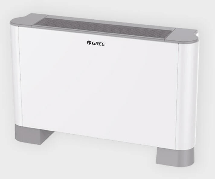 Gree 2-csöves, álló vagy oldalfalra szerelhető parapet fan-coil, modern, letisztult megjelenéssel és levehető lábakkal. Alkalmas hűtésre és fűtésre, hőszivattyús rendszerekhez kiváló hatékonyságú hőleadóként működik. Beépített csepptálcával, integrált vezetékes vezérlővel, valamint jobb oldali 3/4″-os vízoldali csatlakozással rendelkezik.